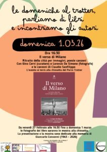 IL VERSO DI MILANO è un libro che parla di Milano. Ne parla attraverso le poesie e i testi delle canzoni più belle della sua storia degli ultimi cento anni. Ne parla attraverso le ottanta fotografie di Lorenzo de Simone, parte delle quali saranno esposte presso la ex chiesetta del Trotter a partire da venerdì 27 febbraio alle 16.30.